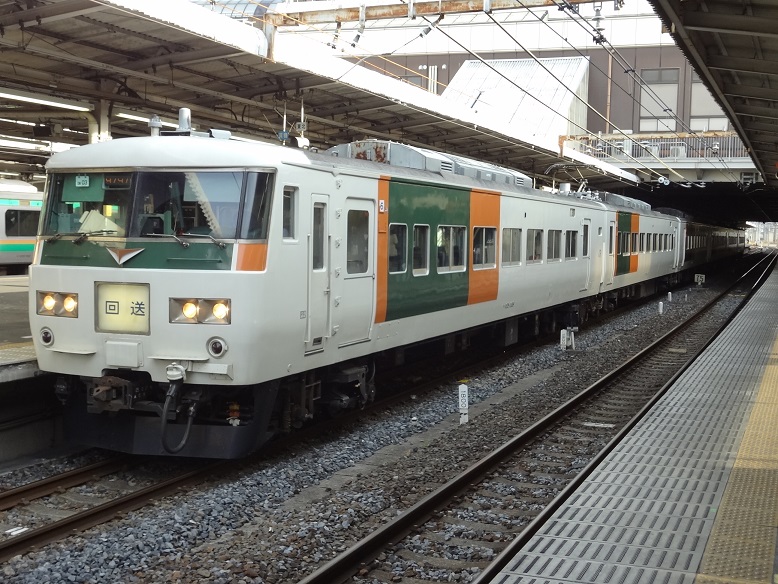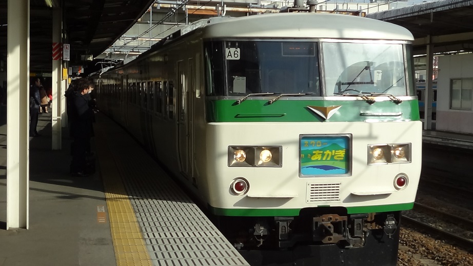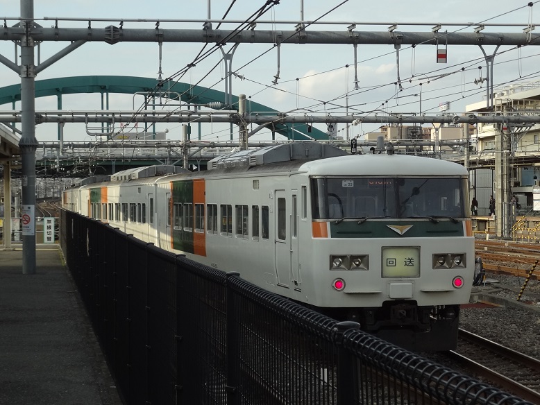 185系A6編成 斜めストライプ塗装 特急スワローあかぎ新宿行き。
