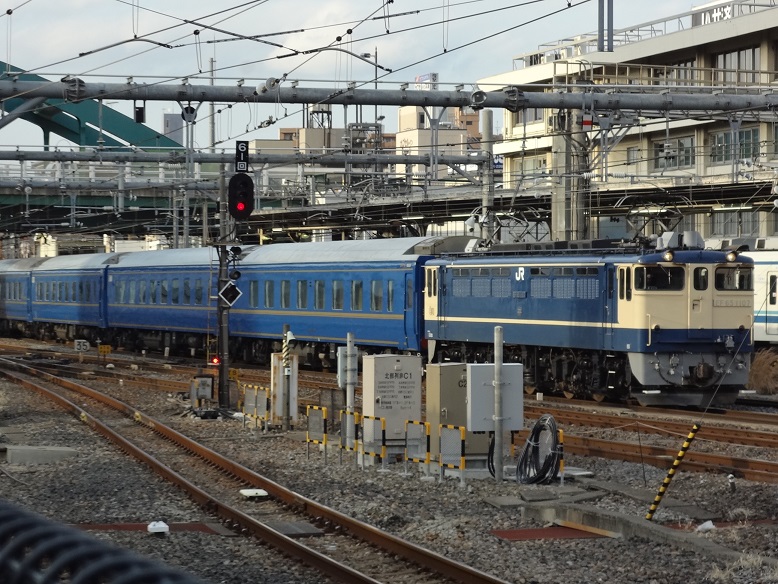 なんと偶然にもEF65-1107牽引の24系客車の回送が来ました。この後尾久のほうへ向かったようです。