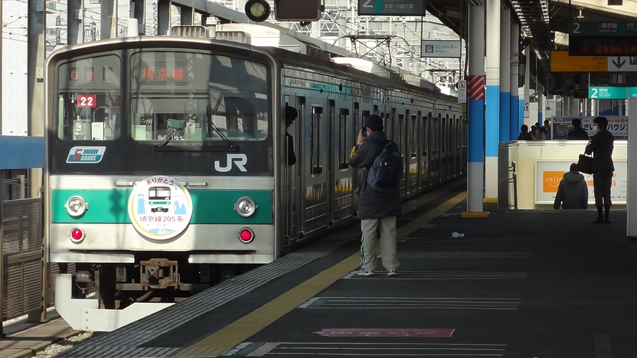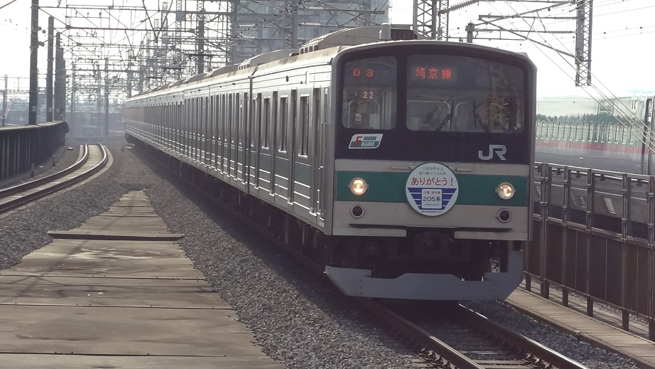 2014年2月1日から、引退寸前の埼京線205系についに、ありがとうヘッドマークを掲出しました。